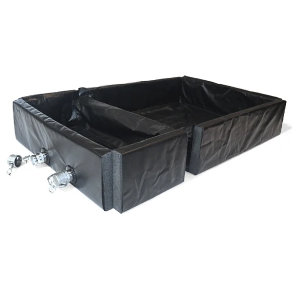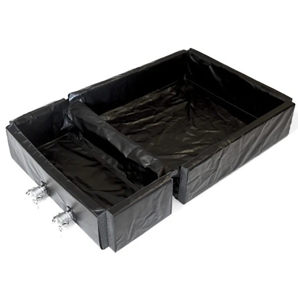 - Two (2) stainless steel camlock fittings allow quick and leak-free drainage of spilled chemicals.