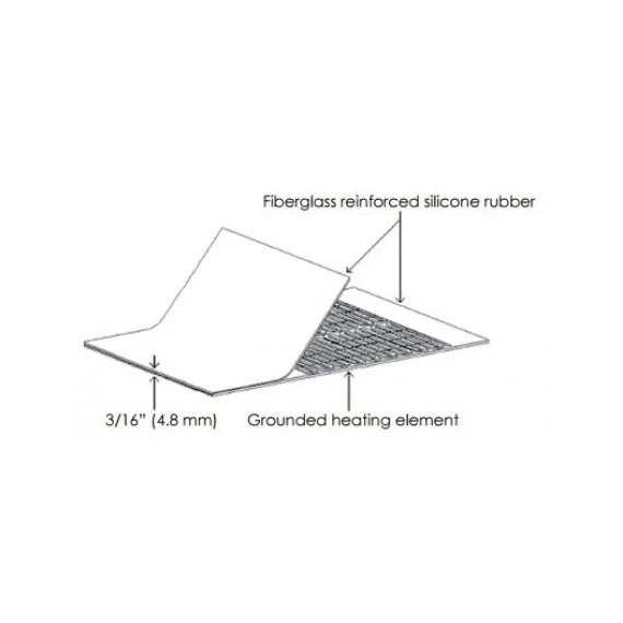 - Heating element is laminated between two layers of 20 mil fiberglass reinforced silicone rubber