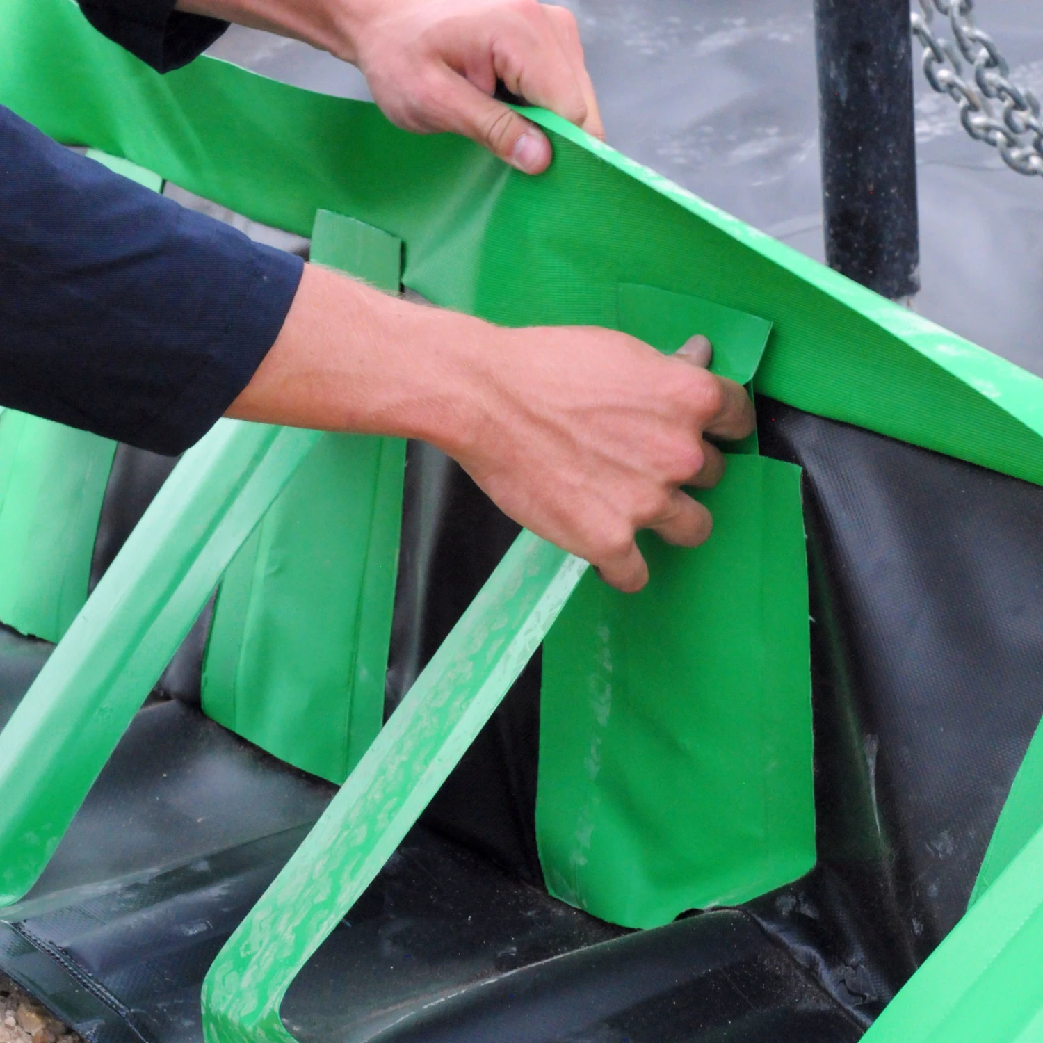 - Sidewalls must be put up or taken down manually when driving vehicle or equipment into Berm.